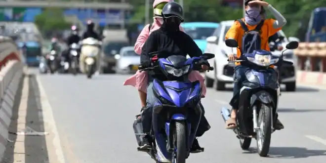 Hanoians participate in traffic in hot weather. Photo: Giang Huy