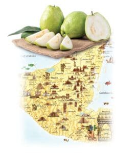 중남미가 원산지인 구아바는 멕시코와 중앙아메리카에서 오랜 역사 동안 재배돼 왔다. 고대 마야 문명에서는 구아바를 식량이나 의식용으로 재배했으며, 콜럼버스 이후 유럽으로 전파됐다. 구아바는 열대식물로서 옛 잉카인들이 영양식 또는 약용으로 이용해온 식물로 원산지는 남미 대륙이다.