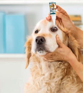 반려동물의 눈에 이물질이 들어갔을 때는 인공눈물을 사용해서 흘려보내주는 방법이 효과적이다. 약국에서 파는 대부분의 일회용 인공눈물은 반려동물에도 사용 가능하다.