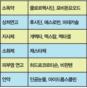 소독약은 반려동물의 필수 상비약 1순위다. 클로르헥시딘(Chlorhexidine)과 포비돈요오드(Povidone Iodine)는 모두 광범위한 소독작용을 가져 외과적 상처 치료 및 감염 예방에 사용할 수 있다.