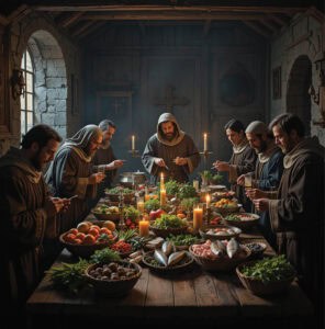 중세 로마 가톨릭에서는 사순절 40일간의 금식 기간과 매주 금요일의 육식 금지가 엄격히 지켜졌다. 이 시기에는 생선과 채소만 섭취할 수 있었고, 이로 인해 유럽의 생선 요리 문화가 크게 발달했다.
