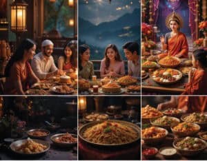 불교의 연등절이나 부처님 오신 날에는 요마리(송편 같은 떡)와 달바트(콩으로 만든 수프)가 공양 음식으로 올려진다.