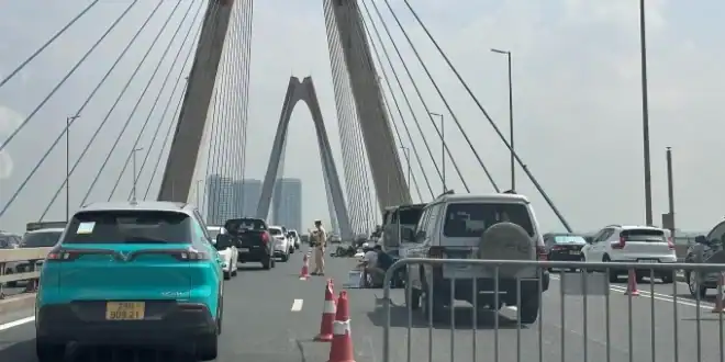 Traffic chaos on Hanoi's Nhat Tan Bridge as crash claims foreigner's life