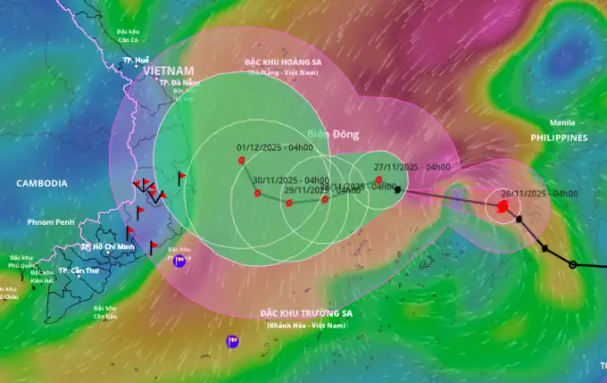 -홍수 참상 채 가시지 않았는데…이번 주말 상륙 가능성·45% 확률로 해상 소멸 심각한 홍수 피해로 신음하고 있는 베트남 중부 지방에 열대폭풍 코토(Koto)가 접근하면서 추가 피해가 우려되고 있다고 25일 Vnexpress지가 보도했다. 국가수문기상예보센터(NCHMF)에 따르면 25일 오전 4시 기준 태풍은 쯔엉사군도(Truong Sa·스프래틀리 군도) 일부인 송뚜따이섬(Song Tu Tay Island) 동쪽 약 540㎞ 해상에 위치해 있다. 최대 풍속 74㎞로 북서쪽으로 시속 20∼25㎞ 속도로 이동 중이다. 26일 오전 4시에는 송뚜따이섬 북북동쪽 약 200㎞ 해상에 위치하며 최대 풍속이 80∼102㎞로 강화된 뒤 서북서 방향으로 시속 15∼20㎞로 이동할 것으로 예상된다. 27일 오전 4시에는 중부 동해(남중국해) 상공, 송뚜따이섬 북북서쪽 150㎞ 해상에 머물며 풍속이 103∼117㎞로 더욱 강해진 뒤 서남서 방향으로 선회하며 시속 …
