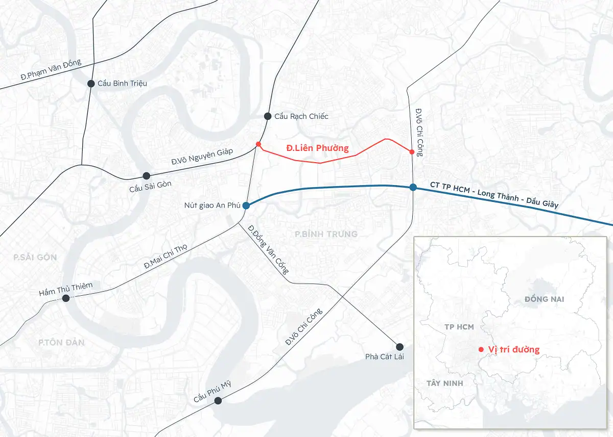 -660m 구간·교량 완공…롱탄 고속도로서 시내 진입 시간 단축 호찌민시 최대 교통 병목 구간인 안푸(An Phú) 교차로의 혼잡을 완화할 리엔프엉(Liên Phường) 도로가 8일 개통된다고 Vnexpress지가 4일 보도했다. 호찌민시는 1년여의 공사 끝에 투득(Thủ Đức·구 투득시)의 빈쭝(Bình Trưng)구에 위치한 리엔프엉 도로 660m 구간을 완공했다고 4일 밝혔다. 총 투자액 약 2600억 동(약 108억원)이 투입된 이번 구간의 핵심은 므엉낀(Mương Kinh) 운하를 가로지르는 리엔프엉 교량이다. 교량 개통으로 도로가 완전히 연결된다. 리엔프엉 도로는 전체 길이 6.7km로 응우옌주이찐(Nguyễn Duy Trinh) 거리와 깟라이(Cát Lái) 교차로를 연결하며 4∼6차선으로 확장됐다. 이 도로는 5km 이상 떨어진 안푸 교차로의 교통량을 분산시키고, 롱탄(Long Thành) 고속도로에서 보응우옌잡(Võ Nguyên Giáp) 대로와 호찌민 시내로 진입하는 시간을 단축할 …