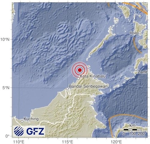 23일 오전 1시 57분(한국시간) 말레이시아 코타키나발루 북쪽 55㎞ 해상에서 규모 7.1의 지진이 발생했다. 독일지구과학연구센터(GFZ)는 이 지진의 규모를 6.8에서 7.0으로 수정했다.