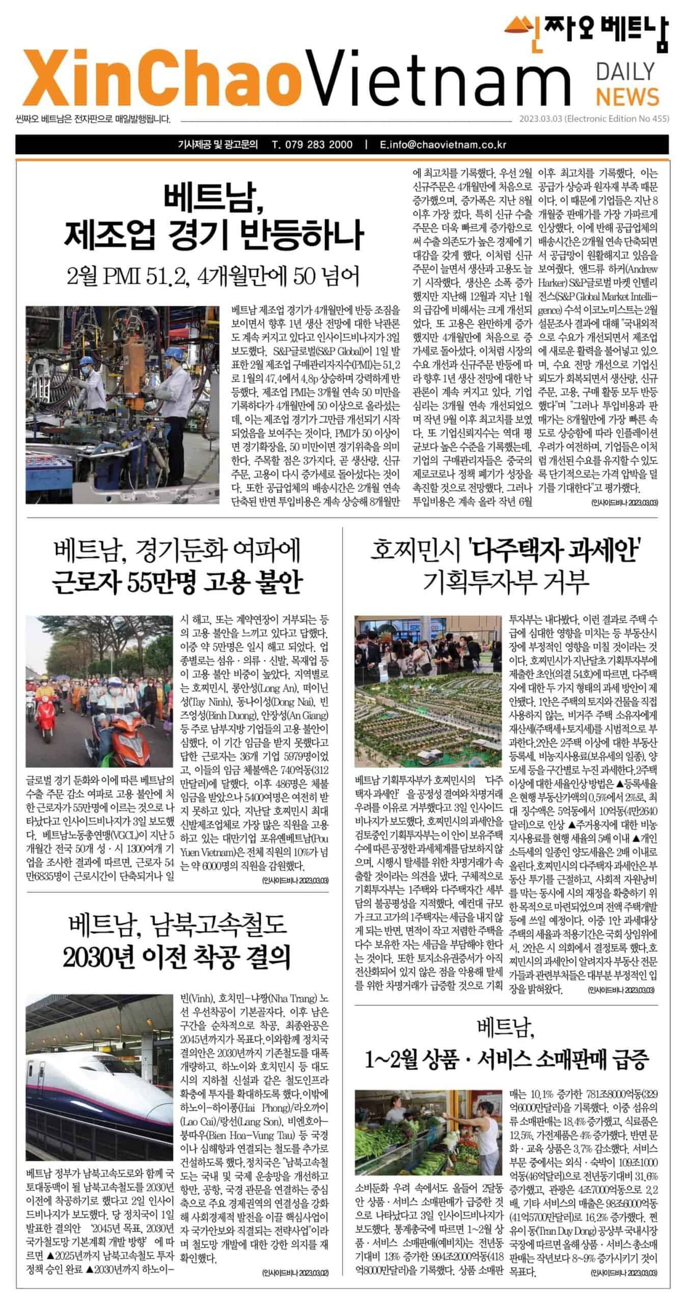 2023. 03. 03 씬짜오베트남 데일리뉴스 PDF 클릭하시면 더 크게 보실 수 있습니다.
