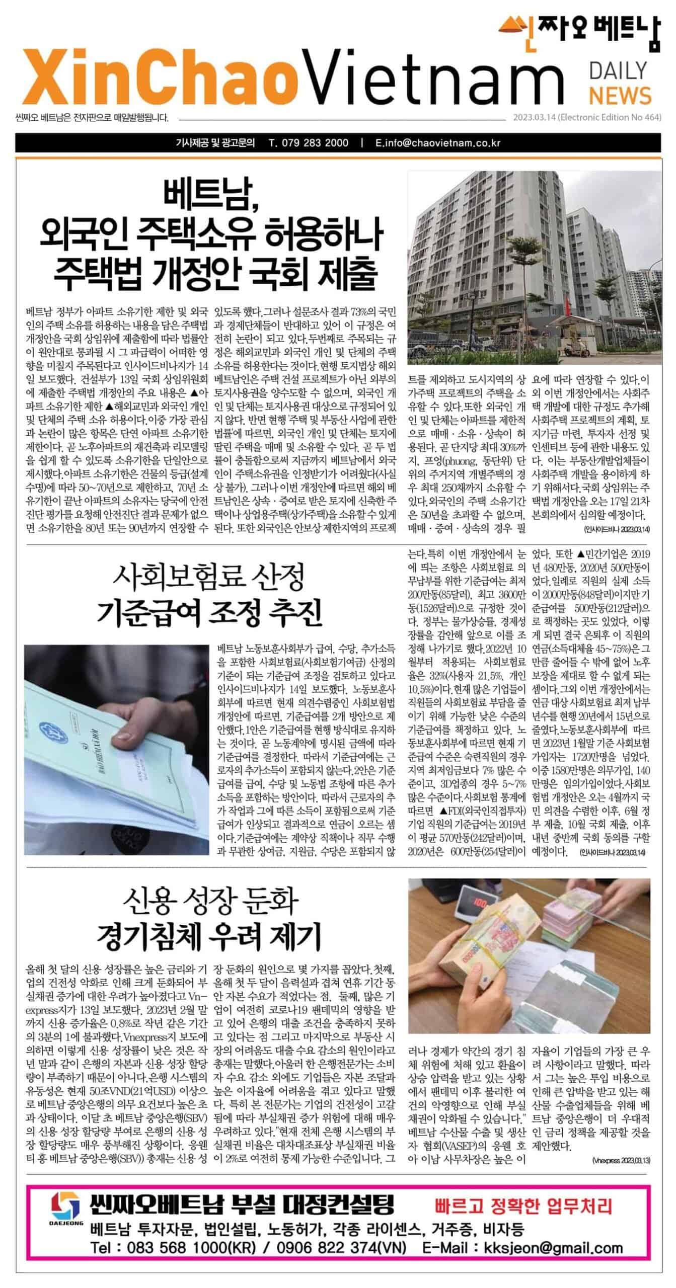 2023년 03월 14일 씬짜오베트남 데일리뉴스 PDF 더 크게 보실 수 있습니다