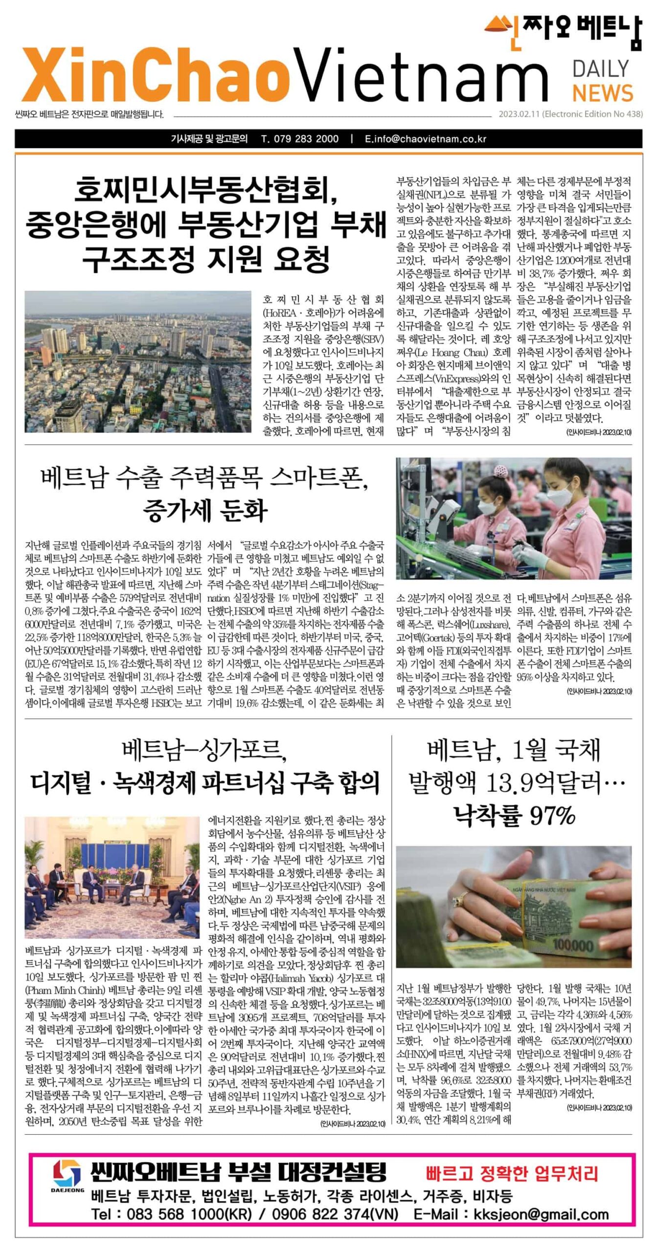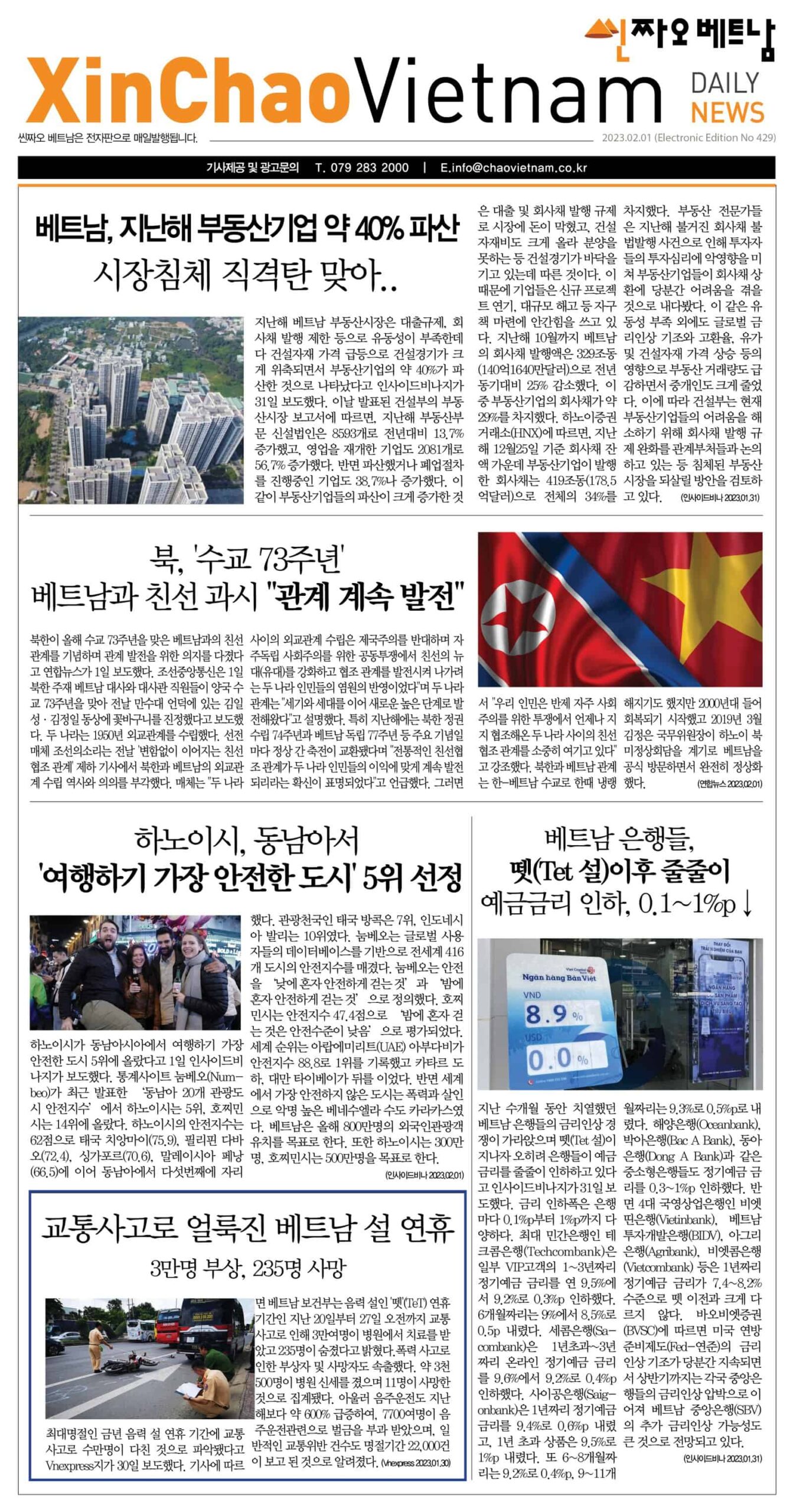 씬짜오베트남 데일리뉴스를 PDF 로 크게 보실 수 있습니다. 씬짜오베트남 02월 13일, 데일리뉴스 PDF 파일로 보기