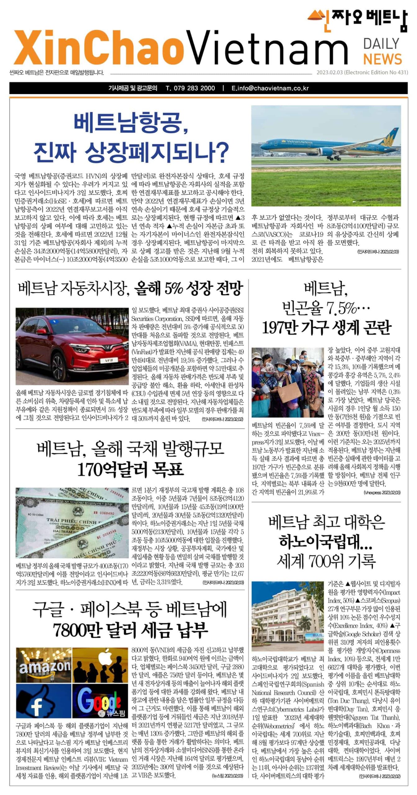 씬짜오베트남 데일리뉴스를 PDF 로 크게 보실 수 있습니다. 씬짜오베트남 02월 07일, 데일리뉴스 PDF 파일로 보기
