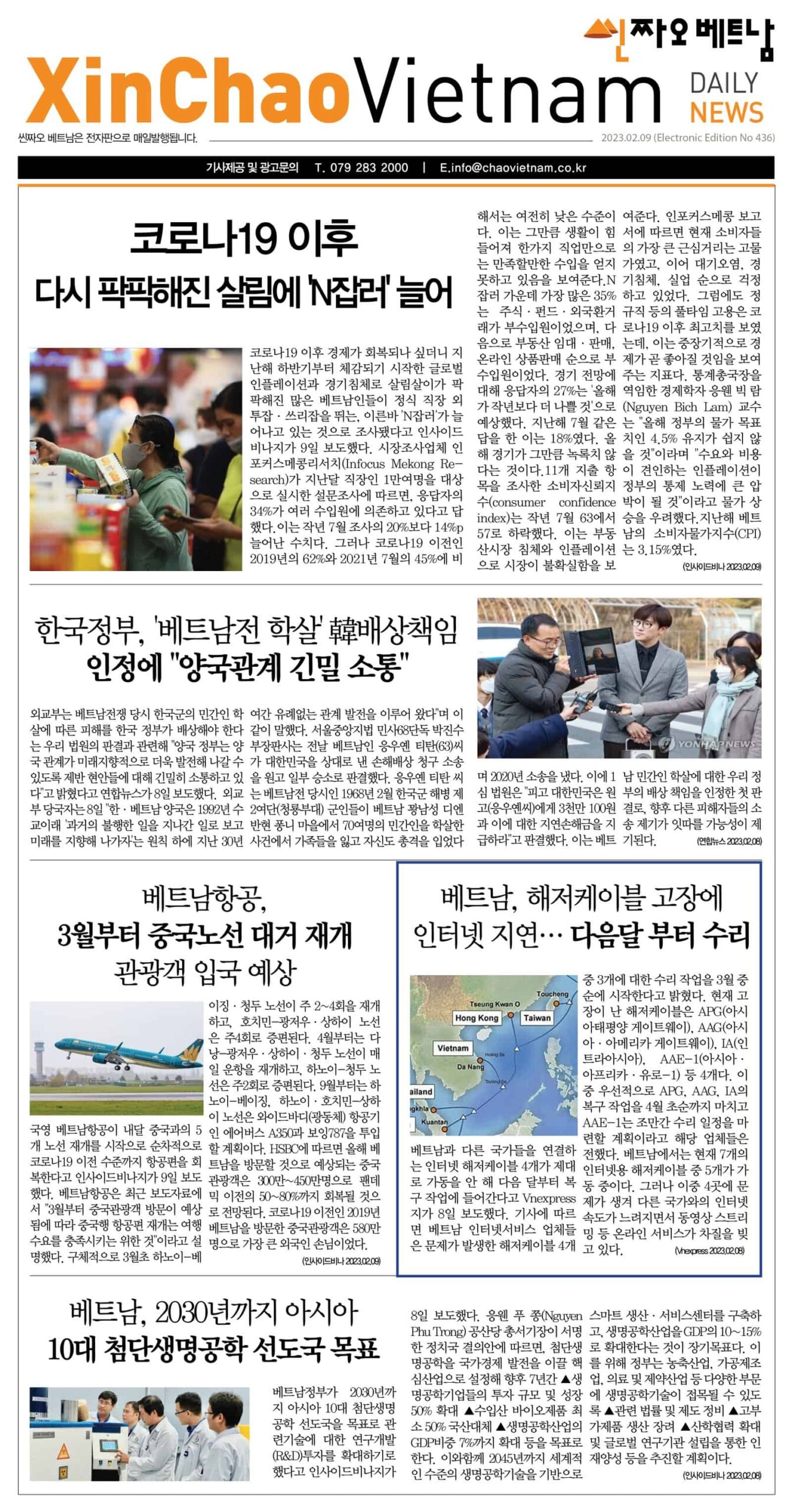 씬짜오베트남 데일리뉴스를 PDF 로 크게 보실 수 있습니다. 씬짜오베트남 02월 09일, 데일리뉴스 PDF 파일로 보기