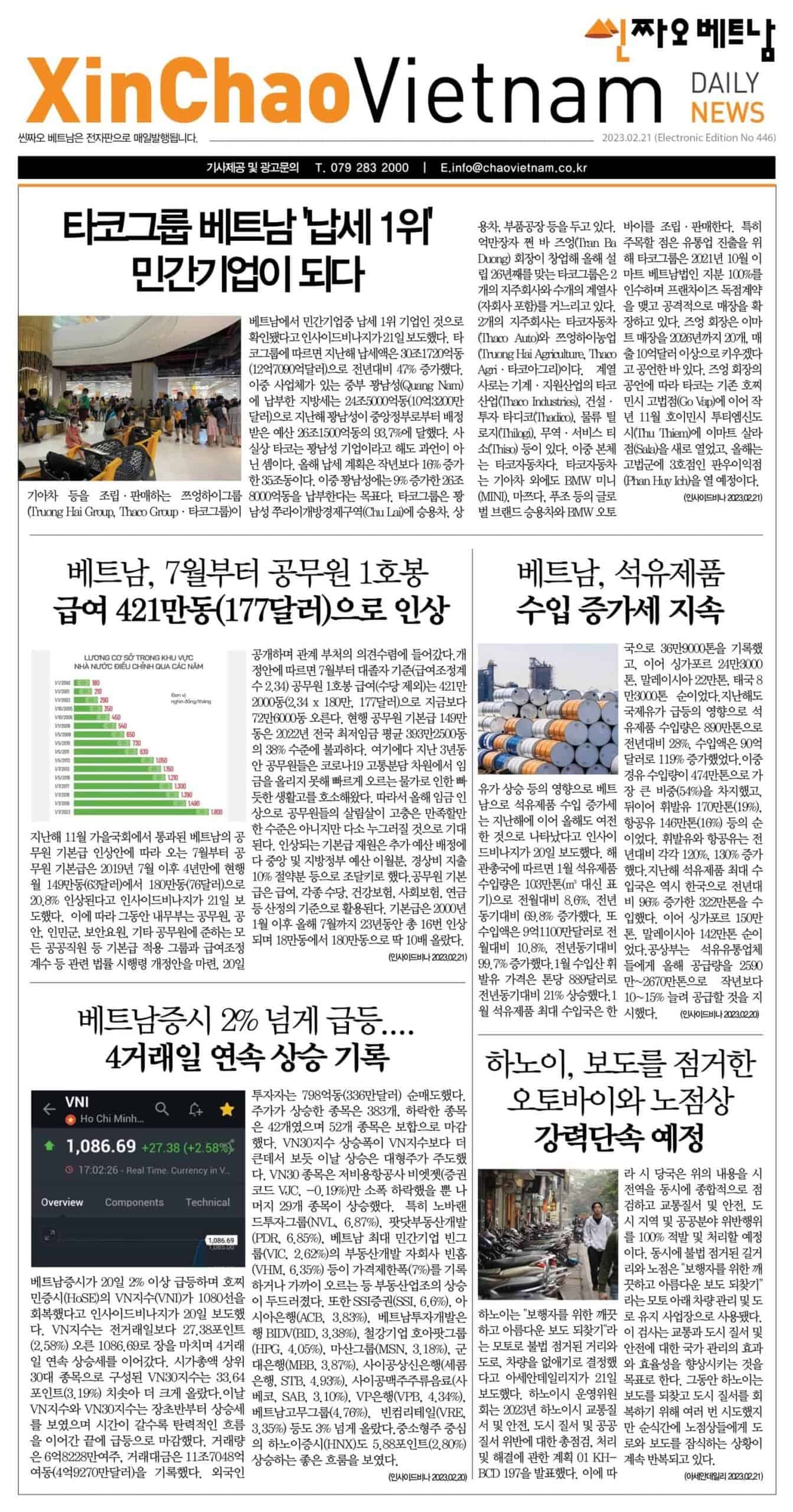 씬짜오베트남 02월 21일, 데일리뉴스 PDF 파일로 보기 ↑↑를 클릭하시면 PDF파일을 보실 수 있습니다.