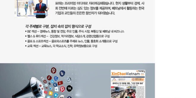 Read More »씬짜오베트남은 2002년 첫 발간이래 매년 베트남에서 사업을 운영하시는 분들의 성공을 위한 광고 비즈니스를 담당해왔습니다. 현재 매달 약 1만부 이상 기업, 공관 그리고 모든 서비스업 분야 업소에 배포되고 있습니다. 저희 씬짜오베트남은 광범위한 테이터와 유용한 기사를 활용하여 높은 신뢰도 및 인지도로 뛰어난 광고효과를 보여주고 있는 베트남 최고의 교민잡지 입니다. 2025년에도 교민분들 사랑과 …