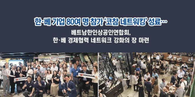베트남한인상공인연합회, 한·베 경제협력 네트워크 강화의 장 마련 베트남한인상공인연합회(회장 김년호, 이하 코참연합회)는 10월 17일 호치민시 벨기에 맥주하우스에서 ‘코참 특별회원사 네트워킹 행사’를 성황리에 개최했다. 이번 행사는 한·베 기업 간 실질적 협력 기회를 확대하고, 코참 특별회원사 간 교류와 정보 공유를 활성화하기 위해 마련됐다. 행사에는 베트남 내 주요 한인 경제단체 대표, 한국 대기업 및 중견기업 주재원, 베트남 현지 기업 관계자 등 80여 명이 참석했으며, 특히 베트남 주요 정부기관 관계자들도 함께 자리해 한·베 경제 협력의 폭을 넓혔다. 이날 VIP로는 베트남 내무부 고용국(National Department of Employment) Nguyen Thi Quyen 부국장, 호치민시 산업무역국(Department of Industry and Trade) Nguyen Nguyen Phuong 부국장, 그리고 Nguyen Minh Hung 상업관리과 부과장(Vice …