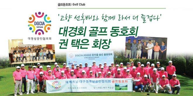 고향 선후배와 함께 라서 더 즐겁다’ 란 기치의 대경회 골프회는 동향 출신 상공인들의 모임인 대경회내 여러 산하 조직 중에서도 가장 활발한 활동과 대경회를 더욱 응집력 있게 운영할 수 있는 촉매 역할을 하고 있다. 재 배트남 대구경북상공인협의회(이하 대경회)는 이름에서 알 수 있듯 대구, 경북 출신 상공인들로 구성되어 있으며 베트남 내에 동향 …